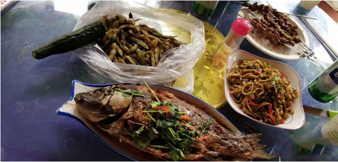 從大青山下來,我們來到了水磨村的民宿的燒烤點,看來今天真是出游踏青的好日子,整個燒烤區域高朋滿座,沸聲一片,有家庭組織的團聚活動,有各個公司舉辦的團建聯誼活動,燒烤、柴火飯、泛舟、賞景等,整個水磨村熱鬧非凡!