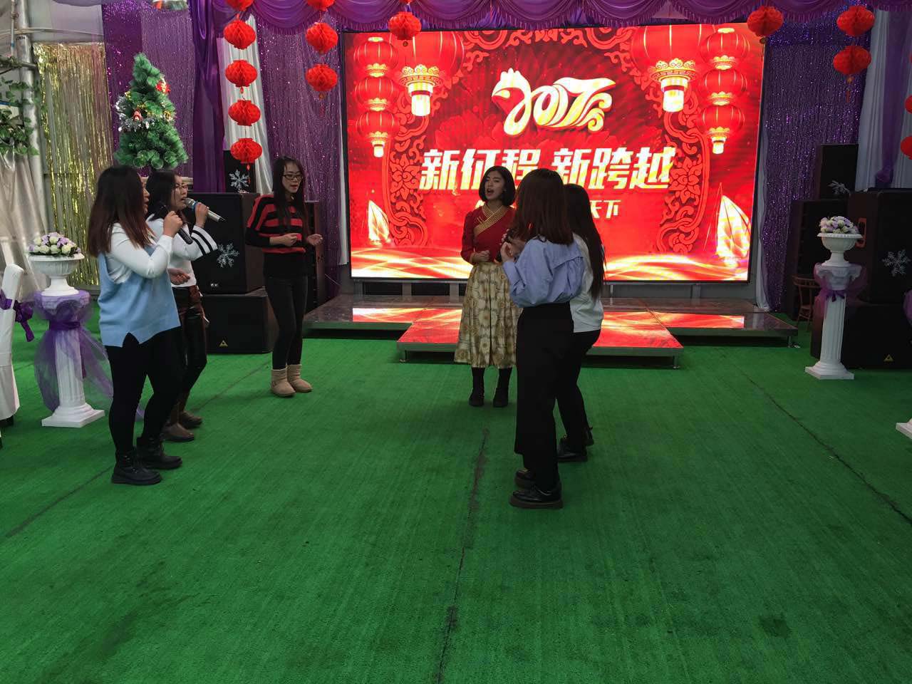 表彰之后是公司的后勤力量團隊綜合部帶來的歌曲串燒,這是一群“紅色娘子軍”,被公司稱為“美女團隊”,她們默默的為公司做后勤保障,默默的支持公司的技術和銷售部門,她們一個個充滿活力、充滿熱心,在張主管的帶領下,力爭為公司的客戶帶來更優質的服務,站在屬于她們的舞臺上盡情吟唱奉獻的美好。