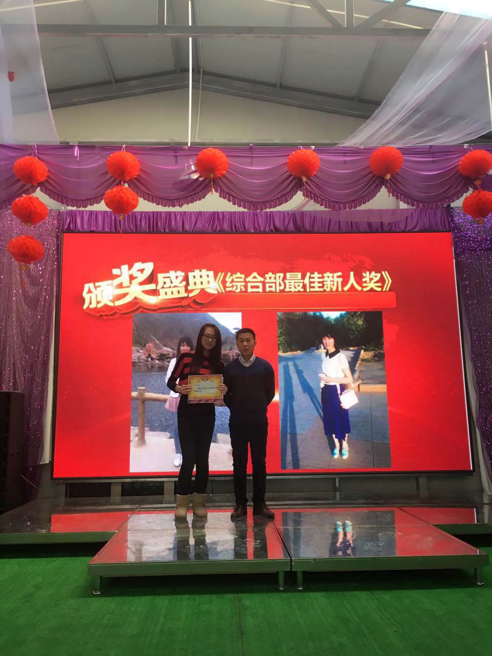 在欣賞了幾個節目之后就到了大會的重點,《表彰大會》,首先進行的是綜合部門的優秀員工表彰大會,獲得獎勵的是小包、這是一位樂觀、高學歷的蒙古族女生,她的努力是大家有目共睹的,她用認真、熱情的心感染著公司的每一個人。