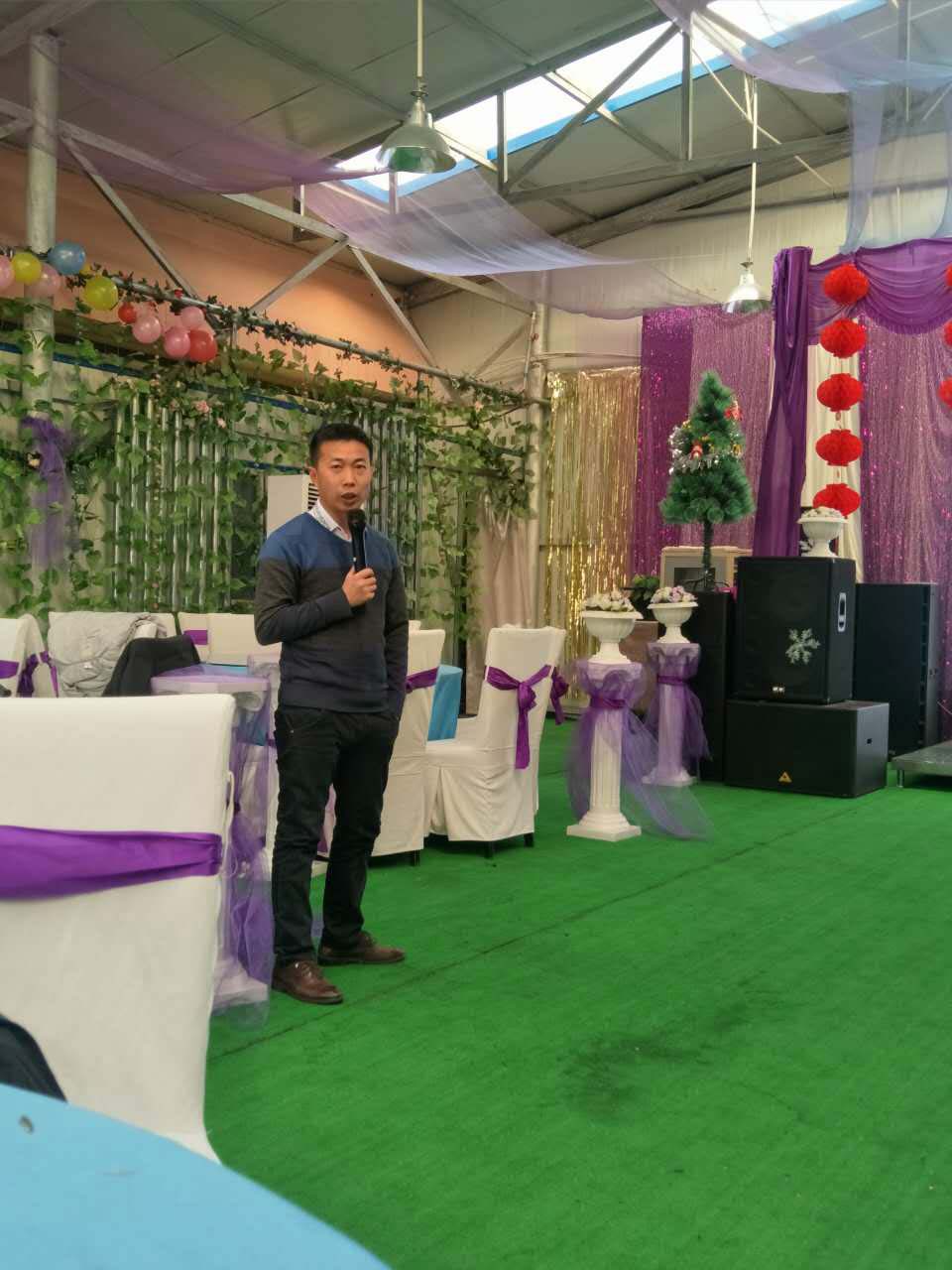 我們一行小伙伴相約來到鴻盛工業園區,伴隨著倒計時在屏幕上的閃現,在11點半的時候終于迎來了公司年會的正式開始,兩位主持人衣著盛裝走上了華麗的舞臺,致開場賀詞,并由公司苗總做新年致辭。