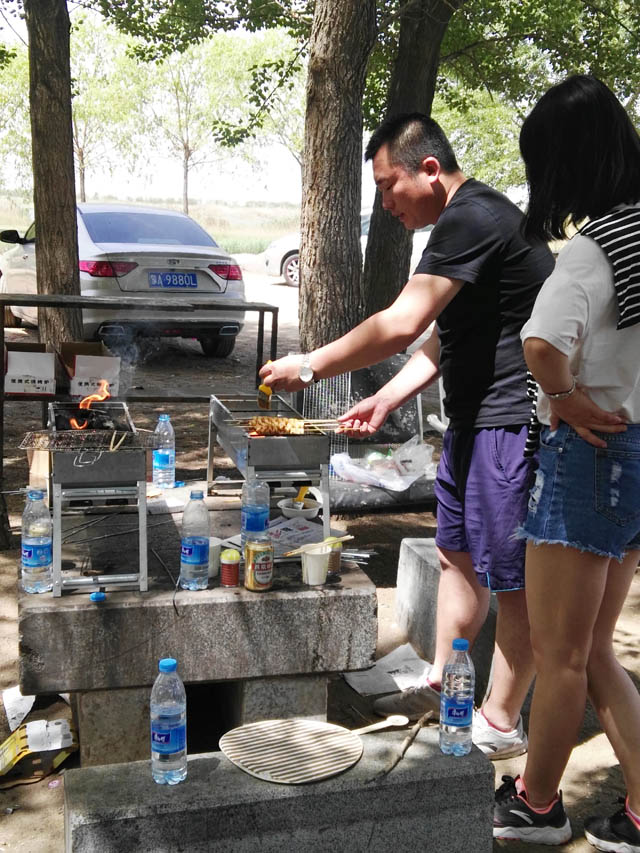 在燒烤的過程中,大家自己動手,享受美味的同時,呼吸著大自然獨有的味道,平時生活和工作中的緊張,此時此刻早已拋之腦后。雖然,自己烤的食物比不上燒烤店的味道,有股糊味兒,但是大家都樂在其中。
