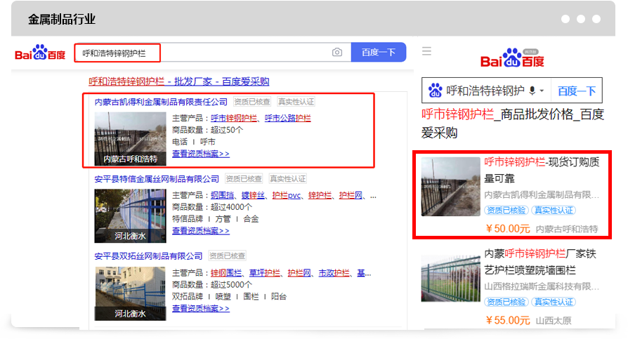 以采購推廣方式接入的客戶,在滿足體驗相關性的條件下,在搜索結果頁位置擁有優先展現權(更多位置陸續開放中)。左邊為搜索結果頁樣式示意